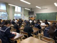 東出先生から、冬休みの生活について、赤、白、黄色、赤白、黒白と色ごとに注意すること、大切なことのお話、中嶋先生から、オミクロン株、感染対策についてのお話がありました。