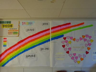 全校児童で取り組み、思いやりがいーっぱい集まっていることが目に見えて分かり、「わー、2年生すごーい!」「どんどんのびる!!」など、虹を見ることで子ども達の心も明るく温かくなるようです。