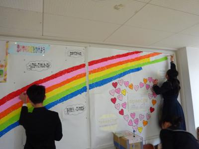 人権週間に合わせて、児童会が考えた「思いやりの虹をかけよう」の取り組みが進み、もうすぐ虹が完成します!