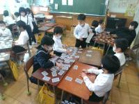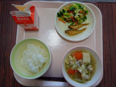 12月20日(月)は秋田県のメニューで、ごはん、ハタハタのからあげ、おひたし、きりたんぽの献立でした。「きりたんぽ」は、食べ慣れていない児童が多いようでしたが、「もちっとしとっておいしかった」と感想を伝えてくれた子がいました。家庭で食卓に上がることが少ないと思われる献立ですが、学校給食で郷土料理にふれる機会をこれからも作っていきたいと思います。