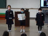 「全校で協力してやってるって感じがします。」「貼るのは大変だけど、みんなでやって増えていくのが嬉しい。」「児童会役員じゃない人も手伝ってくれて、それが嬉しいです。」など、すてきなコメントが返ってきました。