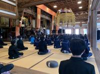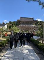 總持寺では、冷たい風が心地よい本堂では座禅体験をし、修行僧の方に、「とても美しい姿勢で感動しました。」と、褒めていただきました。總持寺からバスまで町中を歩く間、町の方々に明るく挨拶をする6年生の姿が、秋晴れの爽やかさとても重なり、とても清々しい気持ちになりました。
