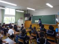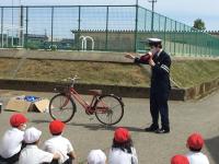 5月12日(水)、能美警察署のおまわりさん、交通推進隊の方3名に来ていただき、3年生の自転車教室を行いました。前日にコースを歩いて確認した子ども達。やる気一杯で元気にあいさつした後、おまわりさんから交通ルールや自転車に乗る前の点検の仕方「ブ・タ・ハ・車・ベル」などについてのお話を聞き、いよいよスタート!!緊張しながら、自転車に乗ってコースを走りました。道路横断や交差点では、おまわりさんや推進隊の方が一人一人に声をかけ、安全確認の仕方を教えてくださいました。自転車に不慣れで、ふらふらしている子もいましたが、1周が終わるころには、左右の確認も上手になりました。自転車を貸していただいた皆さん、自転車を運んでくださった保護者の皆様、ご協力ありがとうございました。