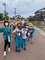 4年生は、辰口丘陵公園へ行きました。実行委員による出発式で遠足がスタート。みんなでめあての確認をして出発しました。到着後は、実行委員が考えた「4年生みんなで遊べる遊び」として、鬼ごっこやじゃんけん列車をして楽しく遊びました。お弁当は、間隔を取って食べました。帰り道はさすがにぐったり。小雨もぱらつく中、往復13㎞の道のりを歩き切ることができました。