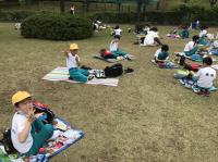 2年生は、粟生運動公園に行きました。運動公園では、クラス対抗ドッチボールをしたり、斜面をシートで滑ったりして遊びました。お弁当は、コロナ対策で、間隔を取って同じ方向を向いて食べました。食べた後もグランドで、サッカーや鬼ごっこ等でたっぷり遊び、往復約6㎞の道のりも、余裕で歩いたたくましい2年生です。