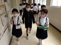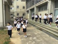 の3つをめあてに、火事が起きた時の避難訓練をしました。全校児童が、しっかり放送を聞いて、安全に素早く避難することができました。コロナ対策として、人との距離をとることも意識して逃げる訓練にもなりました。