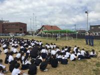 運動場での話の聴き方も、とても立派で感心しました。訓練の様子を見ていただいた消防士の方から、「全員けがなく避難できたので100点です。とても落ち着いて避難できました。」と、言っていただけました。