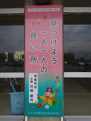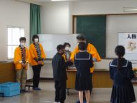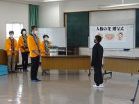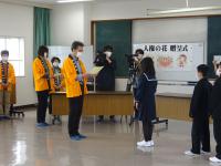 人権擁護委員のみなさんから、人権の花をいただきました。学校を代表して園芸整備委員会の児童が、人権の花贈呈式に参加しました。また、6年生がかいた人権標語の中から、優秀な作品を書いた人に賞状が贈られました。