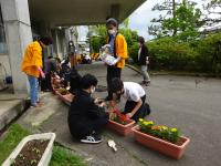 児童玄関に明るく咲く花々のように、子ども達の心にやさしさや思いやりの心が花開くことを願います。人権擁護委員の皆さま、ありがとうございました。