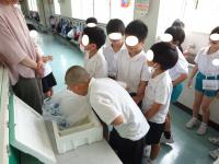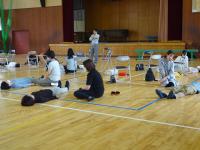 プール開きに先立ち、3年ぶりの夏休みプール解放時に見守りのご協力を頂く1年生保護者の皆様も交え、根上消防署員の方を講師に、救急蘇生法講習会を行いました。