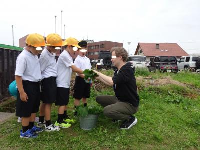 今年は、学校の畑を国際交流協会の方と一緒に使っているので、トビアスさん、コウイさん、イサさんがお手伝いに来てくださいました。