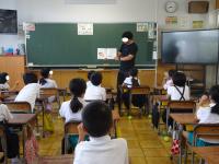 能美警察署の方が、4年生に「通話録音警告機」の愛称募集のお願いに来られました。