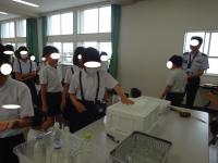 一人一人南極の氷に触った後、氷と水を入れたビーカーに耳を当て、数万年前の空気がはじける神秘的な音を聞きました。「ぴちぴち」「シャー」という小さな音に耳を澄まし、「聞こえる!」「聞こえた!」「めっちゃ小さい音や」など、めったにできない体験を楽しんでいました。