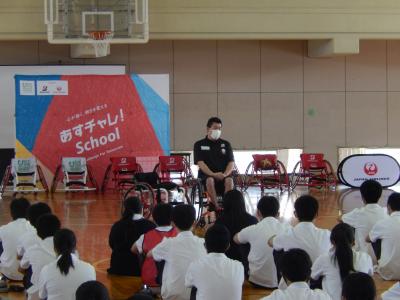 6月24日(木)「産業社会と人間」の授業で「あすチャレ! スクール 車いすバスケットボール紹介プログラム」が行われました。