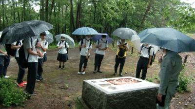 後半は、博物館に隣接した丘の上に登り、北陸最大規模の古墳を、やはり学芸員の方の説明を受けながら見学しました。