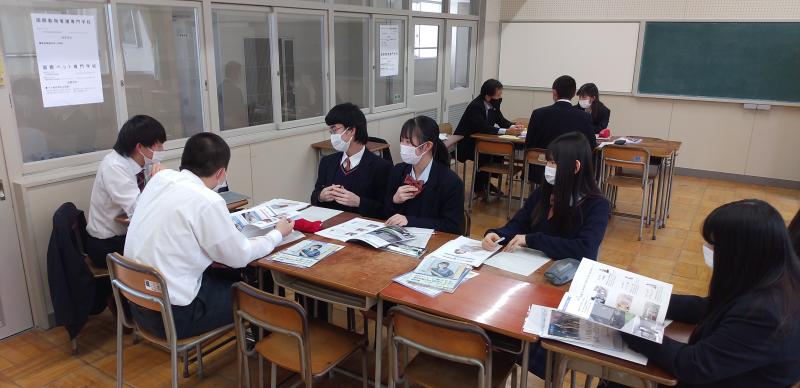 6限目は、生徒達が希望する職種別の会場に入り、それぞれの事業所紹介で聞き取りを行いました。また7限目は、少人数グループに分かれて「どうやって就職先を決めればいいか」「高校生のうちにしておくと良いことは何か」の二つのテーマについて話し合いました。