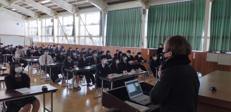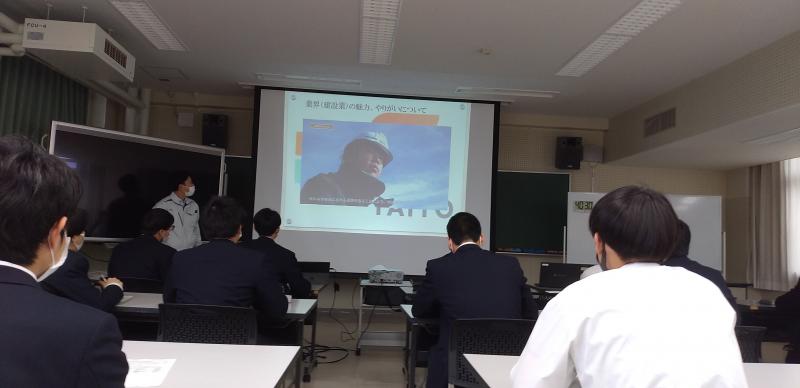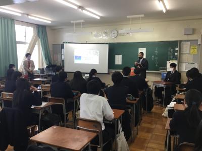 2年生「総合的な探究の時間」(本校での呼称は「陶郷」)で、2月8日(水)に「能美市商工会青年部による事業所(会社など)紹介」が行われました。