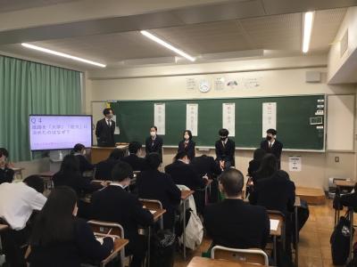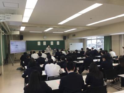 本校卒業生を含めた自分達と年齢の近い青年部の皆さんから、様々な示唆に富んだ助言をいただき、2年生達は目を輝かせていました。「3年ゼロ学期」にふさわしい、キャリア教育の授業になったと思います。