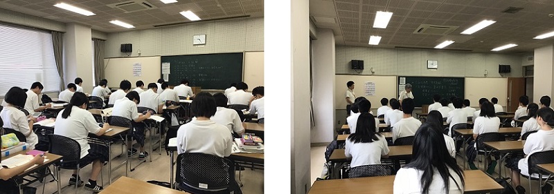 7月23日(火)から27日(土)にかけて、四年制大学への進学を希望する生徒を中心に、寺井地区公民館にて集中学習会を行っています。初日は、自学に加え英語と数学の講義を受けました。