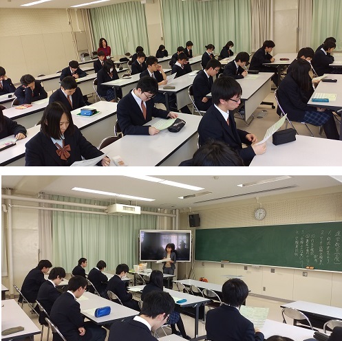 校長先生、向出進路課長、就職担当の柴田先生の3人から貴重なアドバイスをいただきました。生徒達はその話を、しっかり顔を上げて「耳だけでなく、目でも」聴いていたようです。