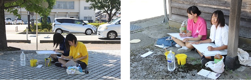 この写生会は今年で3年目を迎え、寺井町の街並みを写生するもので、毎年参加しています。今年は猛暑の中の実施となりましたが、日陰での場所取りと水分補給を心掛けて写生に取り組みました。