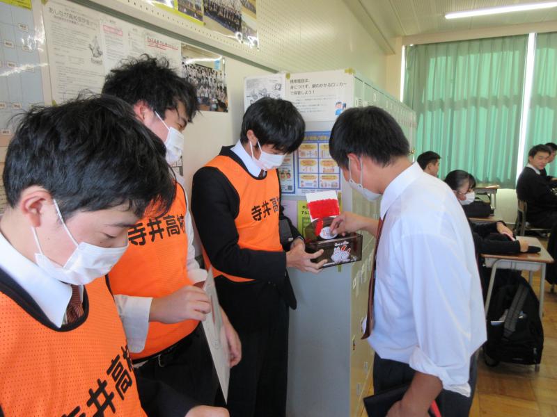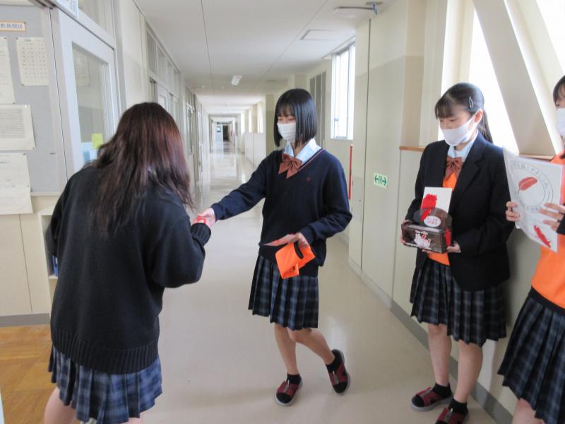 JRC部員が募金箱を持って、昼休みに各教室および職員室をまわりました。