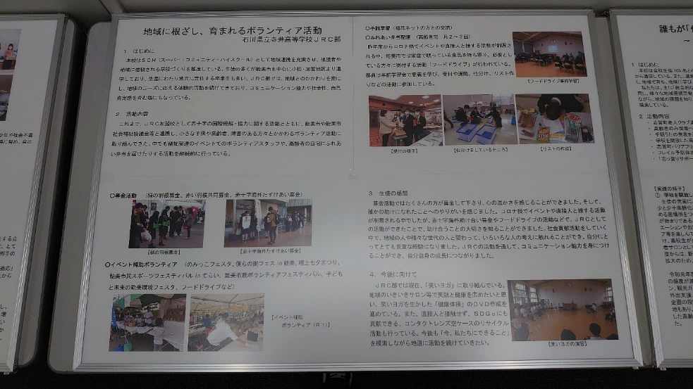 コロナ禍でイベントや直接人と接する活動が制限される中でしたが、赤十字海外助け合い募金やフードドライブの活動などで、JRCとしての活動ができたことで、助け合うことの大切さを知ることができました。
