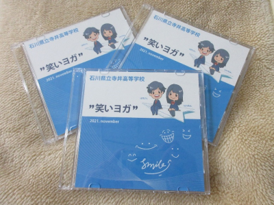 これまでJRC部・合唱部・3年有志で練習を重ね、撮影・編集した笑いヨガの動画が、美術の先生の手で素敵なDVDに仕上がりました。