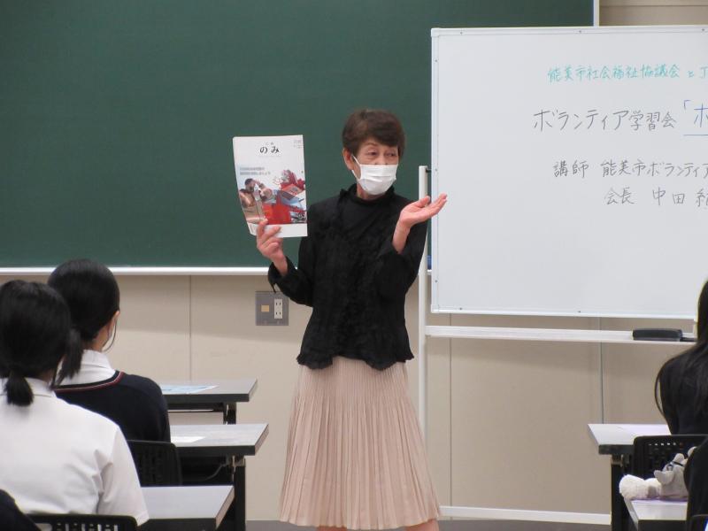 能美市ボランティア連絡協議会会長の中田紀子さんを講師にお招きし、学習会を行いました。