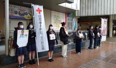 12月20日(日)に日本赤十字社石川県支部主催のもと、海外たすけあいプロジェクトに参加しました。午前は金沢市近江町交流プラザにて海外ボランティアのセミナーや参加団体の交流会が実施されました。午後は近江町市場にて街頭募金に参加しました。