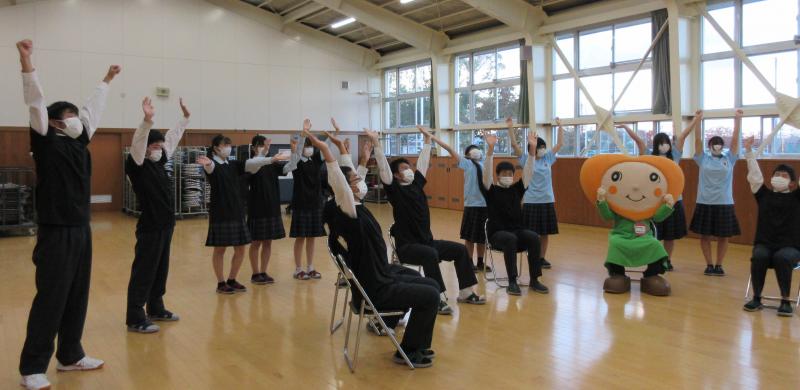 JRC部と合唱部の生徒で、笑いヨガを取り入れた軽運動の動画を撮影しました。