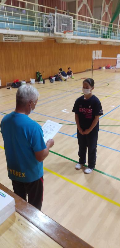 能美市内の学校やクラブチームの選手が競い合う、年に1度の選手権大会。小学生から社会人までが出場しました。本校は、1年生女子の青山さんがシングルスで3位入賞!