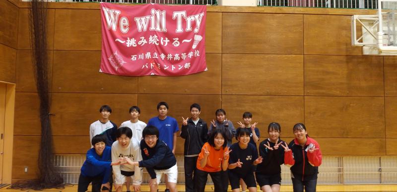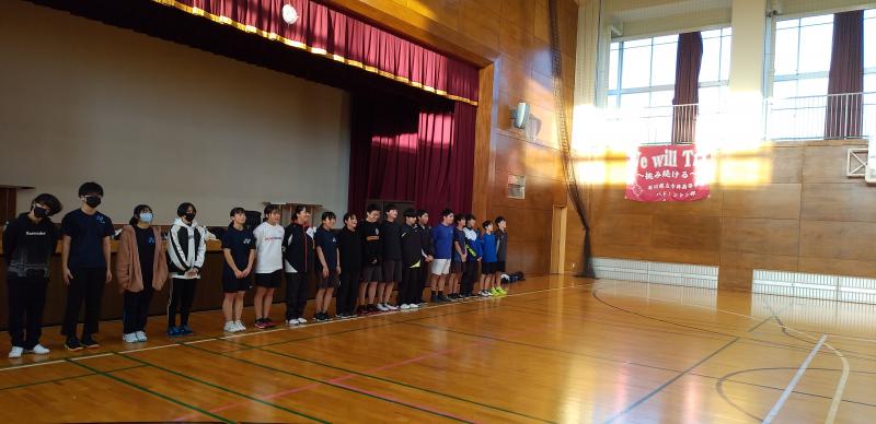 今年は5つの中学校(寺井中、南部中、辰口中、松陽中、布水中)から、合計8名の中学3年生がバドミントン部の練習に参加してくれました。