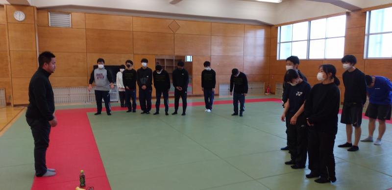 下の写真は、3月14日(水)の放課後に武道場と生徒玄関スペースで行われた合同練習の様子です。