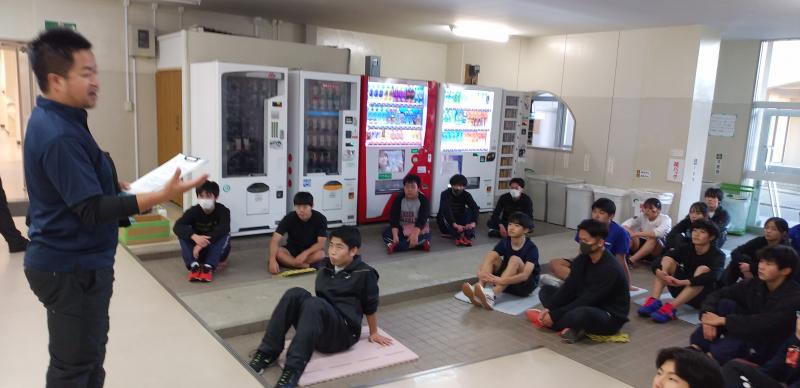 指導者は、陸上部監督・顧問の江波先生。「キレの良い動き」を身につけるための、小スペース・短時間で効果を上げるトレーニングメニューを伝授していただきました。