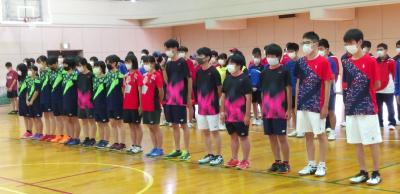 写真は、土曜日の午前半日練習の終わりに、みんなでコートに挨拶をしている様子です。