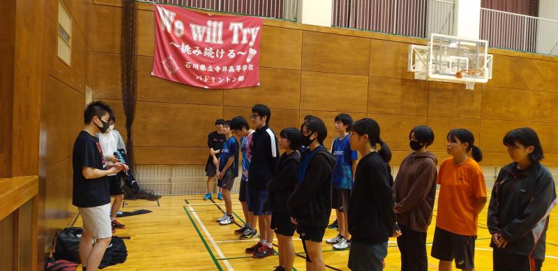 団体戦の結果は、男子は大聖寺高校に2対3で惜敗。女子は鶴来高校に3対0で快勝後、第1シードの小松商業高校に0対3で敗退。その内容は、「自分の殻を破り・チームの殻を破って、自分自身とチームを成長させるショットやラリー、ゲーム」が随所に見られる素晴らしい「出来映え」だった。個人戦では、男子のエースダブルス(3年生は高校からバド部、ペアは2年生のバド経験者)がベスト8入り。女子はベスト8が1組・ベスト16が2組という活躍を見せた。