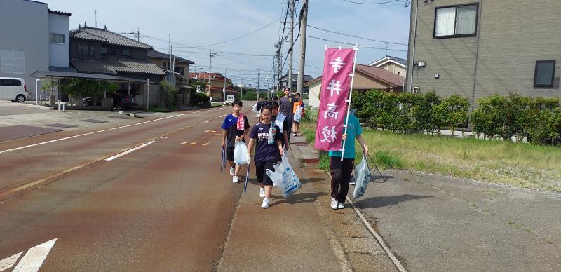 下の写真は、同日行われた「地域清掃ボランティア」を頑張っているバドミントン部員達の様子です。
