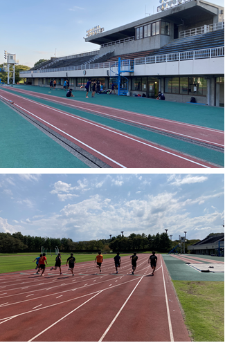 物見山陸上競技場での練習風景です。能美市の皆様のおかげでいつも気持ち良く使用しています。ありがとうございます。