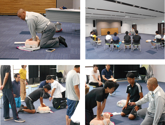 昨年に引き続き、今年も8月6日(月)に能美市消防本部で、職員研修としてAED講習会を実施しました。救急救命士の方にご指導いただき、講義・実技の講習を受けました。校内外での万一の事故を想定して、心肺蘇生法やAEDの使用法、止血法や異物除去の方法等を学びました。