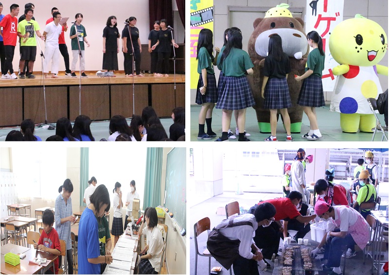 午前の部はステージ発表(吹奏楽部、合唱部、空手道部の発表など)や自主ステージ、午後の部は模擬店や各クラスによる催し物、文化部の展示を行いました。