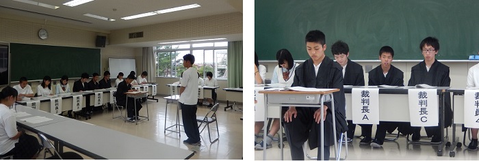 金沢地方・家庭裁判所小松支部の出前教室が開かれました。2年生36人が模擬裁判を通して、裁判員制度の理解を深めていました。