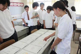 本日、学校に能美市公共交通会議の方が来校し、寺井高校生向けの能美バス定期券のデザインを美術部の生徒と共に検討しました。デザインの決定は、後日発表されます。