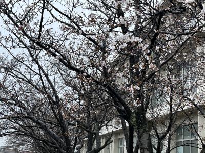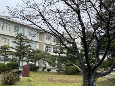 今日はあいにくの雨ですが、校庭の桜がほころび始めました。