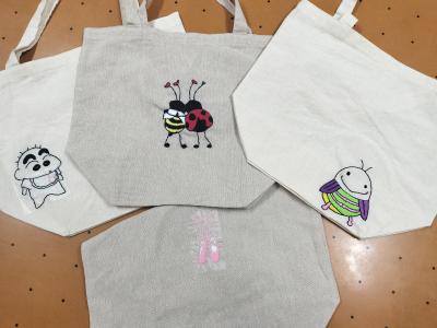 3年生活福祉系列の選択科目「服飾手芸」で、「刺繍バッグ」の製作に取り組みました。1年間の集大成として、フランス刺繍の技法を活かし、それぞれが想い想いのデザインで作品を仕上げました。デザインに合わせ、色々な刺繍を取り入れるなど、創意工夫し取り組むことができました。