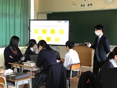 11月7日(月)の2年生の古典探究では、「大鏡」に収録されている「花山天皇の出家」の研究授業が行われました。「花山天皇は粟田殿の行動をどうして疑えなかったのだろうか」とJamboardで自分の考えをまとめたり、班の仲間と考えを伝え合ったりして学びを深めました。