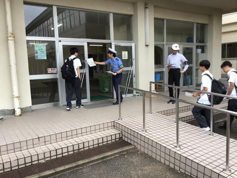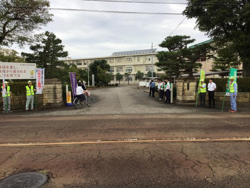 9月21日(木)、能美市ライオンズクラブ、能美地域交通安全活動推進委員協議会、能美警察署、PTA役員の方々の協力にご協力いただきグッドマナーキャンペーンを行いました。本校生徒もイーグル隊を始め、各クラスの公安委員が協力して参加しました。