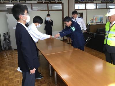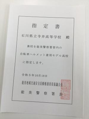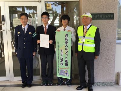 10月18日(水)に自転車ヘルメット着用モデル校指定書交付式がありました。