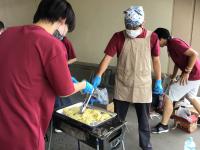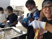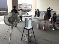 調理会場では、OS1が大量消費され、氷柱や冷風機も調理でほてった身体を冷やしてくれました。熱中症患者を出すことなく無事に終了し、元気に後片付けとなりました。
