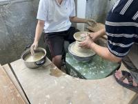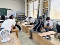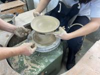 陶土を均等に形作ることが難しく、生徒たちも先生の指導のもと、試行錯誤しながらろくろを回していました。